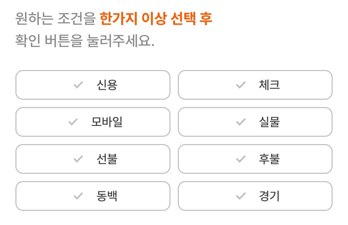 - 아래와 같이 신용/체크, 선불/후불, 실물/모바일 등 본인의 조건에 맞는 카드를 선택해주세요.