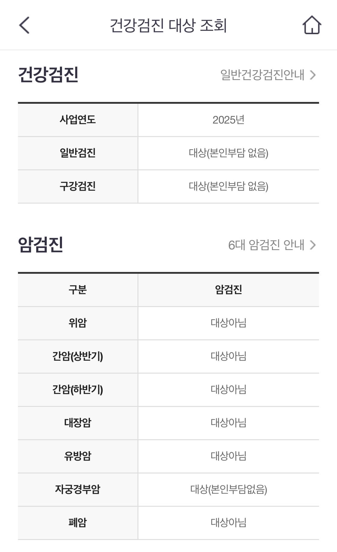 - 건강검진 메뉴 → 대상자 확인 가능