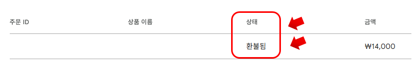 저 역시 위와 같은 방법으로 진행 후 1일만에 환불 승인되어 상태가 "환불됨"으로 변경된 것을 확인할 수 있었습니다!