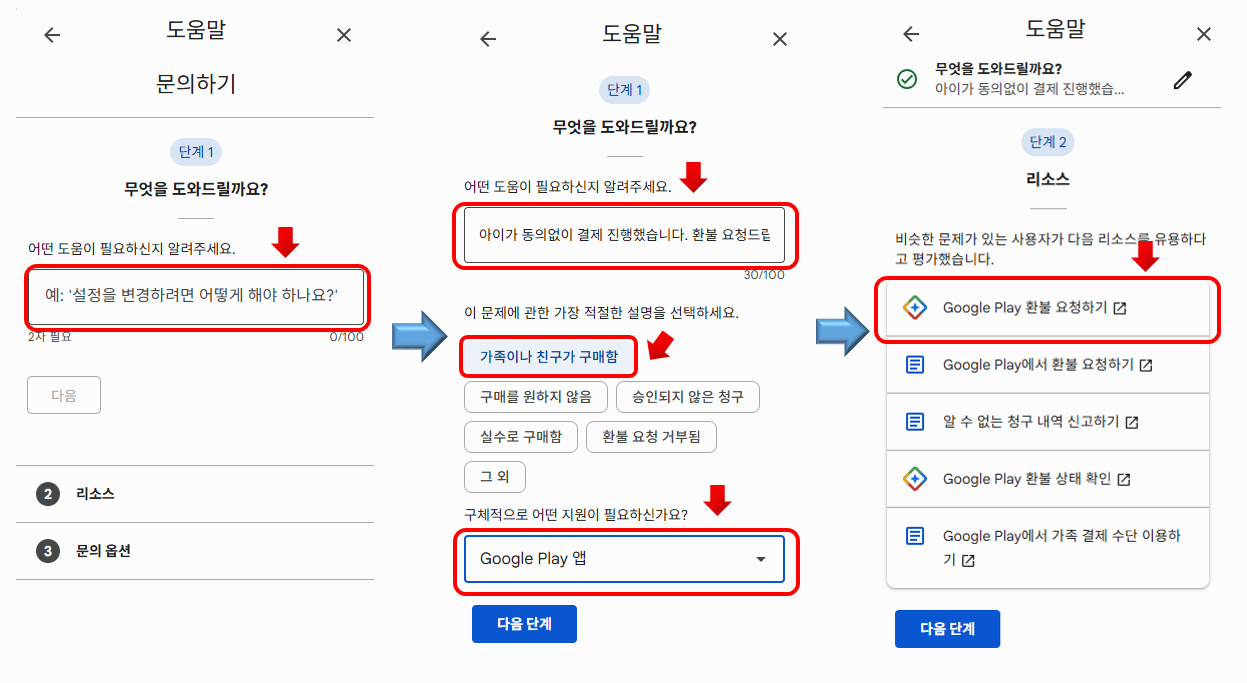 - Google Play 환불 요청하기 - 다음 단계 누르기