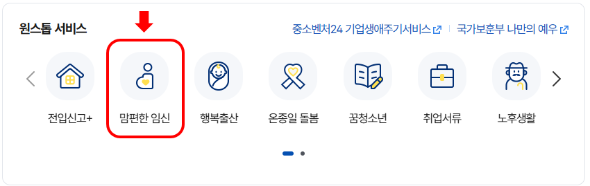임신/출산 관련 정부 지원 서비스를 한 번에 통합 신청할 수 있는 온라인 시스템 '맘편한 임신'