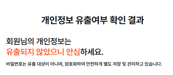 저의 경우에는 조회하니 유출 피해자가 아니라는 확인을 받을 수 있었습니다.
