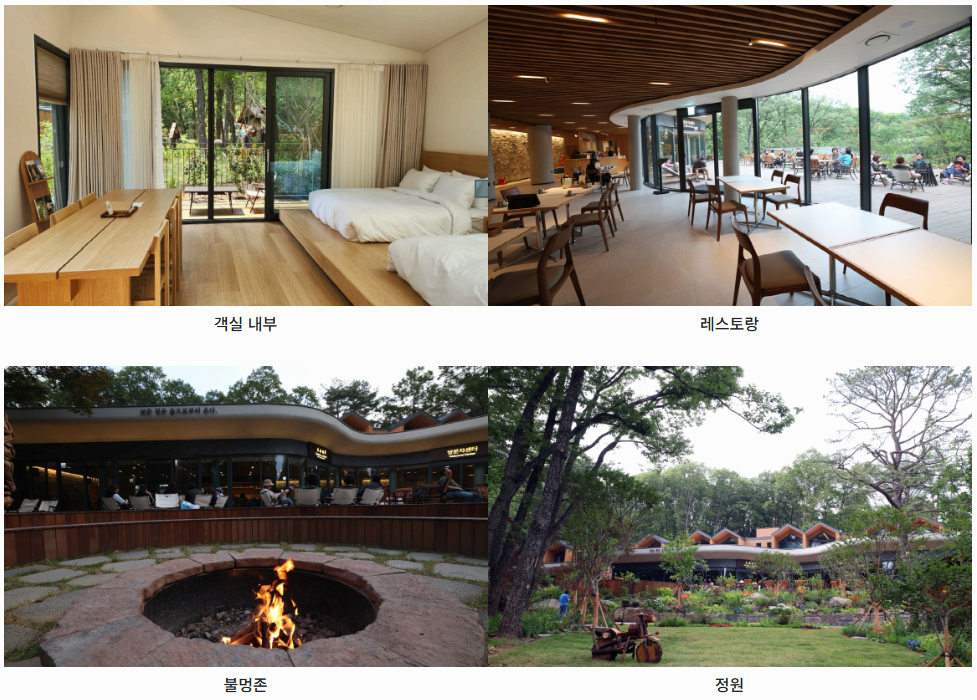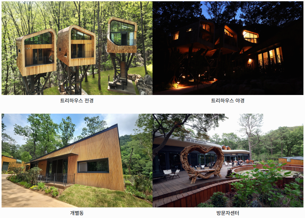 - 콘셉트: 숲속 트리하우스 + 자연 체험형 쉼터 + 가족 단위 힐링 공간